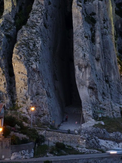 Just aross the river from the Citadel is another very famous landmark called the "Rocher de la Baume" This is a natural rock formation that has the appearance of the pages of a book being opened. Of course this would be one fricken big book.